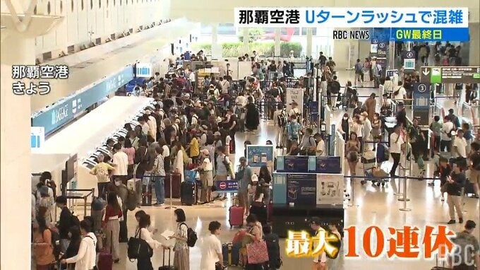 最大10連休となったことしのゴールデンウィーク。最終日の6日、那覇空港は連休を沖縄で過ごした観光客や帰省客らで朝から混雑しています。