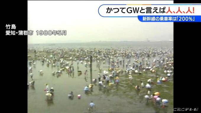 そして、日本初上陸のコアラをひと目見ようと、名古屋市千種区の東山動物園もこの混雑。そして、GWの恒例と言えば、三河湾でのアサリの潮干狩り。80年の映像です。家族総出で干潟に集まりました。