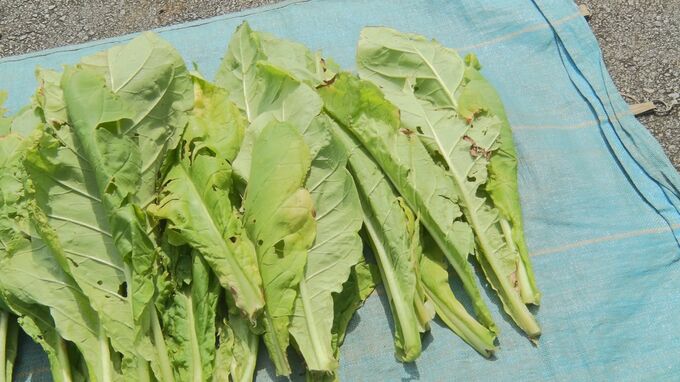 このうち大城進さんの畑では、先月のまとまった雨の影響で葉タバコが順調に成長し、収穫を迎えたということです。