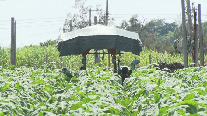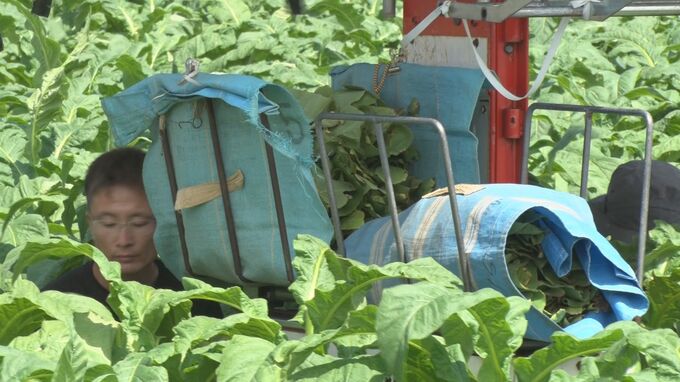 沖縄県内有数の葉タバコ産地の伊江島で、先月から収穫作業が始まっています。