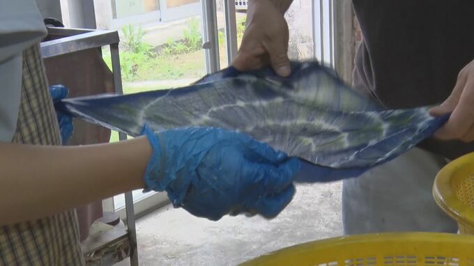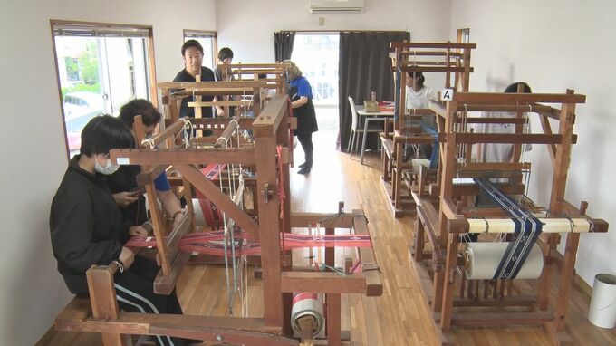 市内の工芸品店ではワークショップが開かれ、織り機を使ったコースター作りのほか、糸で縛ったハンカチを専用の液に浸して模様を定着させる藍染め体験が行われました。