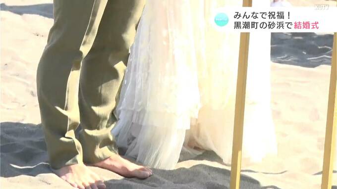 Tシャツアートが潮風になびく黒潮町の砂浜で、4日一組のカップルが結婚式を挙げました。『サンドアートウェディング』は、黒潮町入野(いりの)の砂浜を会場に選ばれたカップルに公開で結婚式を挙げてもらおうと、…