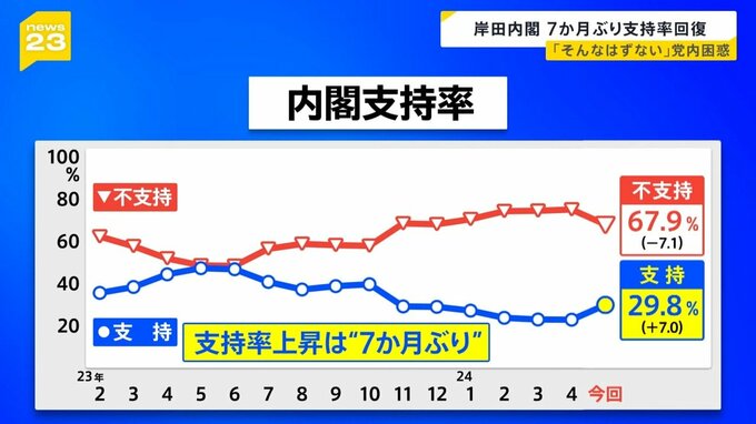 しかし、派閥の裏金事件など、政権への逆風が吹く中での支持率アップに与党内から困惑の声も…