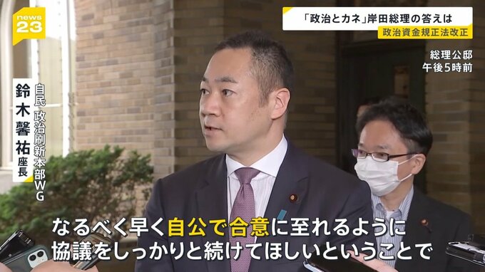 岸田総理は夕方、政治資金規正法の改正に向けて自民党の実務者と協議し、茂木幹事長を中心に公明党との与党協議を急ぐよう指示しました。