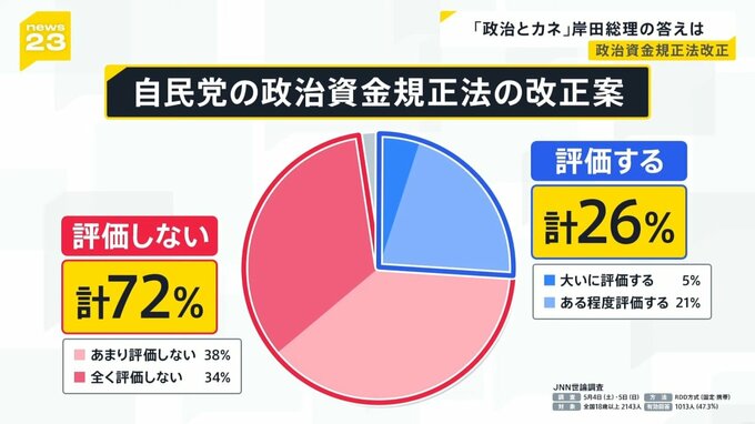 JNNの世論調査では、法改正に向けた自民党の案を評価しないとの答えが72%に上っています。