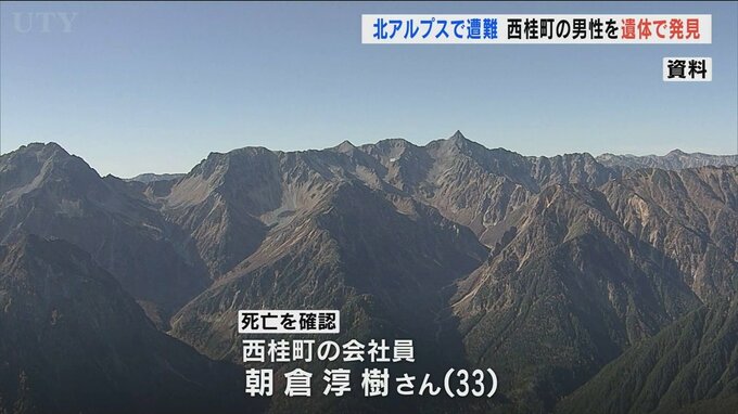 長野県の北アルプスの穂高連峰に向かい行方が分からなくなっていた山梨県西桂町の33歳の男性が6日、遺体で見つかりました。