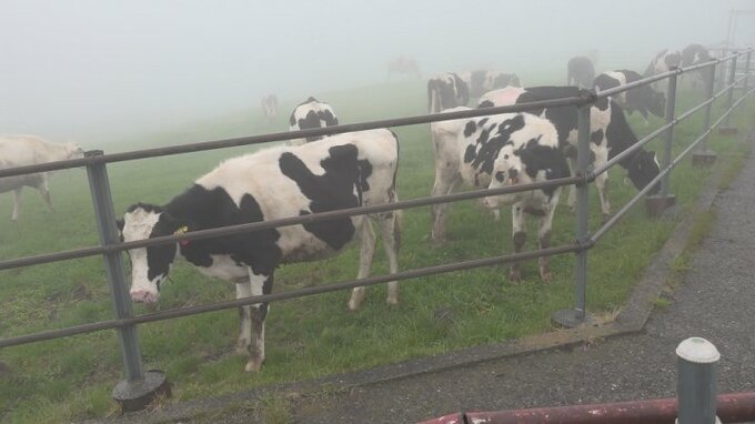 牛の放牧は初夏の風物詩となっていて初日はあいにくの雨模様でしたが、牛は草を盛んに食べて牧草地を駆け回り、元気な姿をみせていました。
