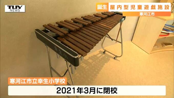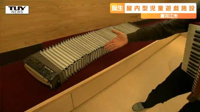 矢野秀樹アナウンサー「閉校した幸生小から寄贈してもらったもの。そのアコーディオンを改造した巨大なオリジナルの楽器で遊ぶことができる」