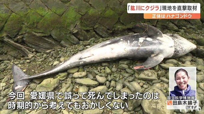 「川にクジラ」ジョギング中の女性が発見 3メートルほどの「クジラと思われる生き物」 その正体は…? 愛媛・大洲市肱川