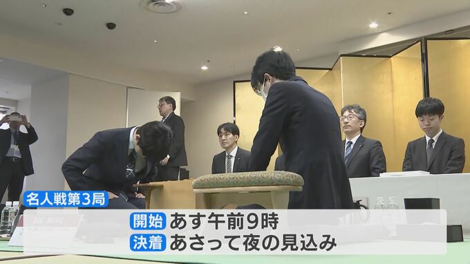 名人戦第3局は8日午前9時に始まり、9日夜に決着する見込みです。