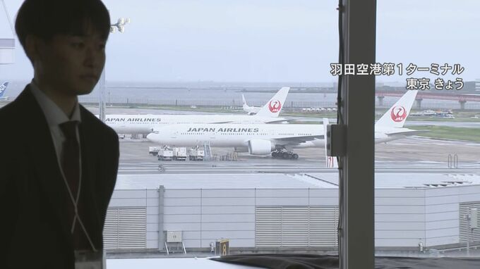 第1ターミナルの中の会議室に畳を敷いた会場の窓からは、飛行機が離着陸する様子も。