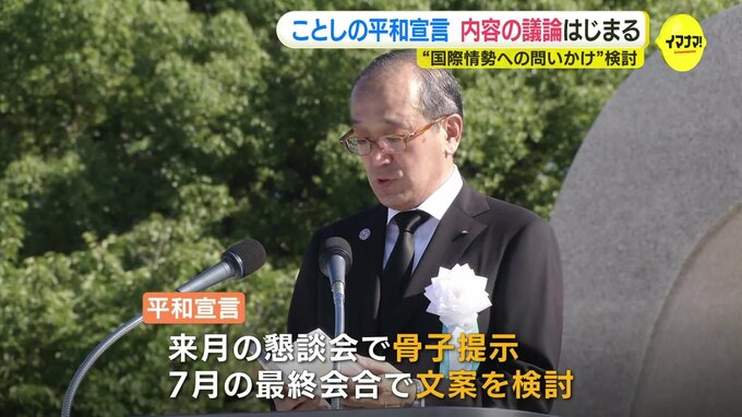 ことしの平和記念式典で読み上げる「平和宣言」について議論する懇談会の初会合が開かれました。懇談会は「平和宣言」について広く市民などから意見を聞くため毎年、開かれています。広島市の松井市長を座長に、被…