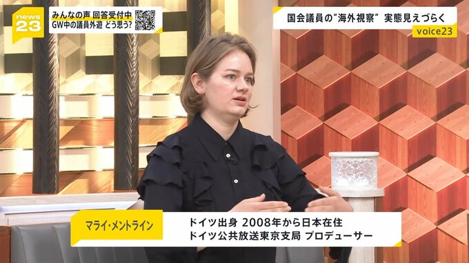 議員によってはSNSなどで発信している方もいます。ただ基本的に、その公開の義務はない。ドイツで、国会議員の方々の海外渡航は、どういうふうに捉えられているんですか。