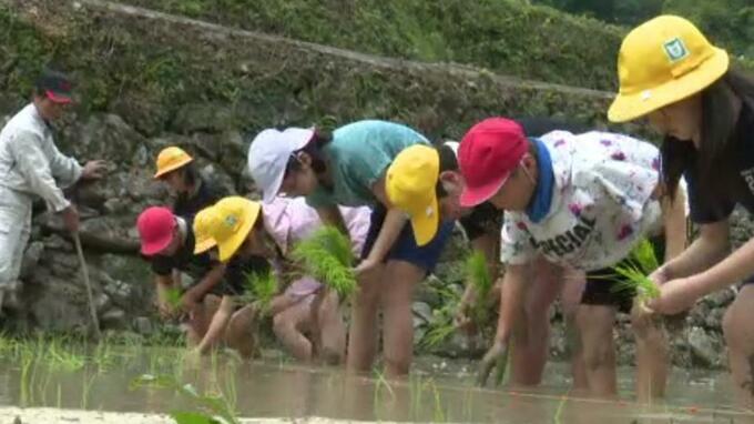 国の重要文化的景観に選ばれている松野町の棚田で子どもたちが田植えを体験しました。田植えを行ったのは松野東小学校の児童19人です。松野東小学校では国の重要文化的景観に選ばれている松野町奥内地区の棚田…