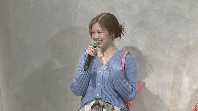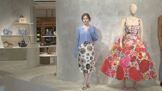 POPUP限定アイテムを着用した白石さんは”花柄のスカートがすてき。このニットは伊勢丹限定ですごく色が好き”とにっこり。続けて”(POPUPの雰囲気は)すごく上品の中にもお花畑の中にいる気持ちになれる。すてきなPOPUPです”と大絶賛しました。