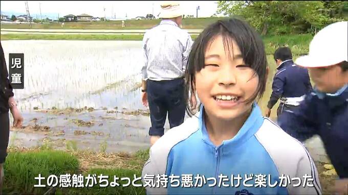 田植えが本格化する中、米どころ宮城県大崎市で8日、小学生が昔ながらの手作業で田植えを体験しました。