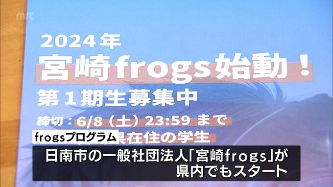 宮崎県内の学生を対象に、次世代のリーダーを発掘し育てる人材育成プロジェクト「frogsプログラム」が始動しました。「frogsプログラム」は、「未来を創る人材」を育てようと、既に沖縄県、北海道、茨城県で行われ…