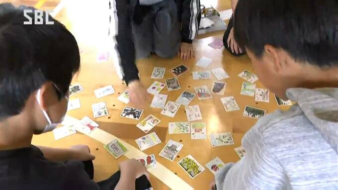8日は、制作に参加した長沼小学校の子どもたちにかるたが贈られ、6年生が早速楽しんでいました。