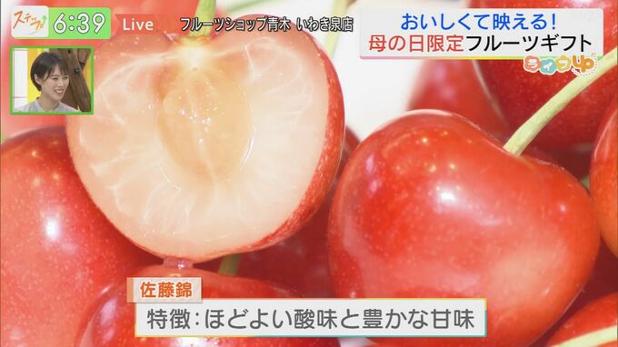 さくらんぼは山形県産の『佐藤錦』で、ほどよい酸味と豊かな甘味が特徴です。