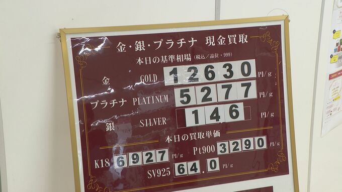 金相場は、4月には1グラム1万3000円台になるなど歴史的な高値で推移していて、8日も1万2000円台と安定して高価格をキープしています。