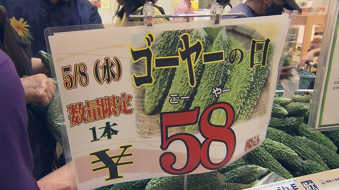隣接する店舗では「ゴーヤー」の語呂に合わせて1本58円の特売が行われ、多くの買い物客で賑わいました。