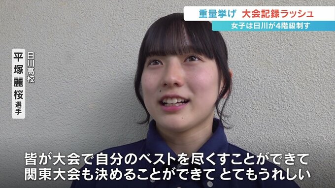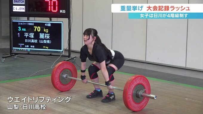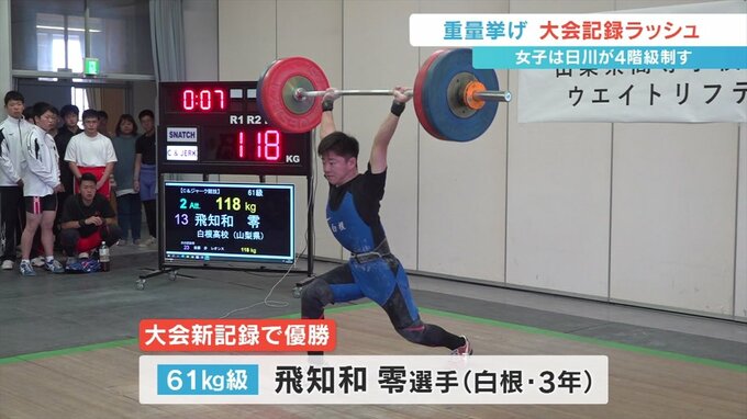 一方男子は61kg級で白根高校の飛知和零選手がトータル213kgの大会新記録で優勝し、男女合わせて6つの大会新記録が生まれました。