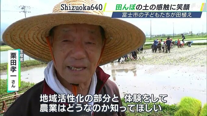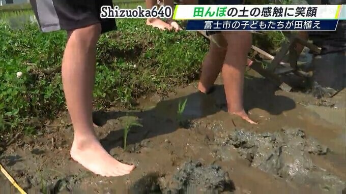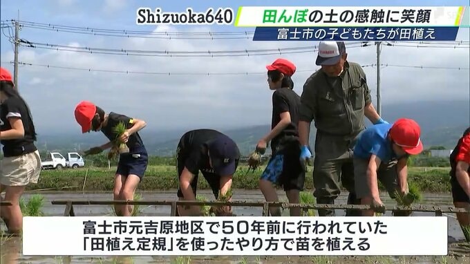 静岡県富士市の小学生が5月8日、昔ながらの方法で田植えを体験しました。