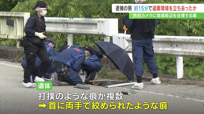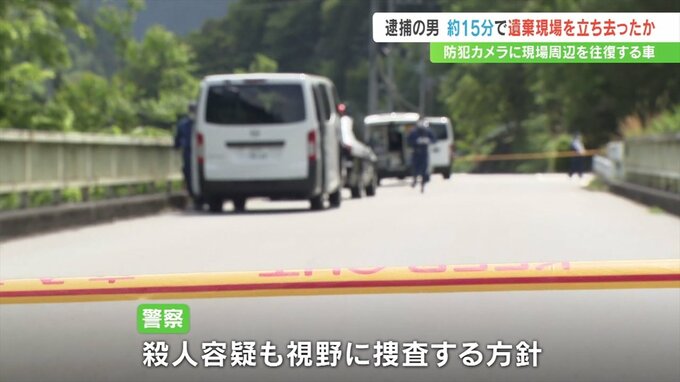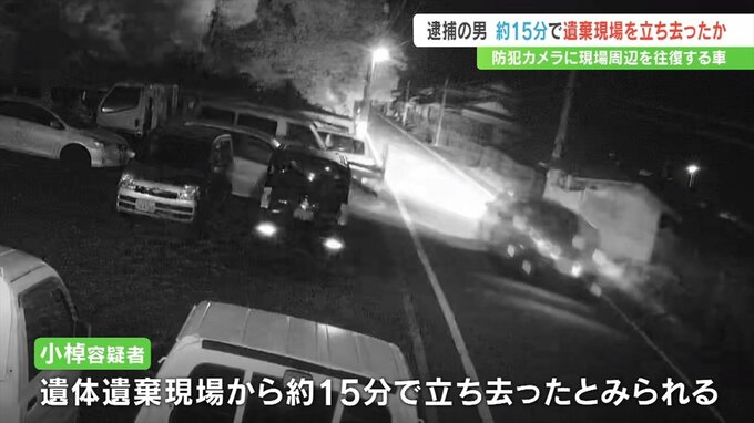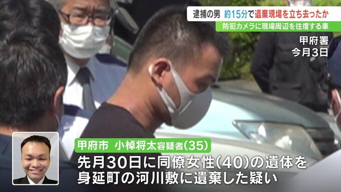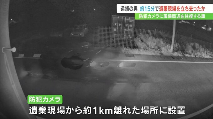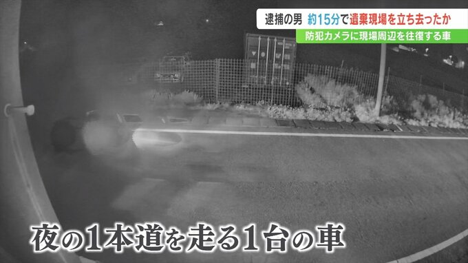 山梨県身延町の河川敷に女性の遺体を遺棄したとして逮捕された男が、およそ15分で遺体の遺棄現場から立ち去ったとみられることが、現場付近を往復する車を捉えた防犯カメラの映像からわかりました。