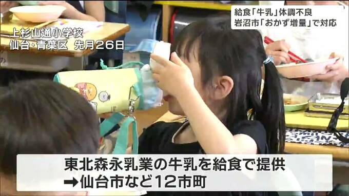 学校給食の牛乳を飲んだ一部の児童と生徒が体調不良を訴えた問題で、宮城県岩沼市では、牛乳を提供できない代わりにおかずの具材を増やすなどの対応を始めました。