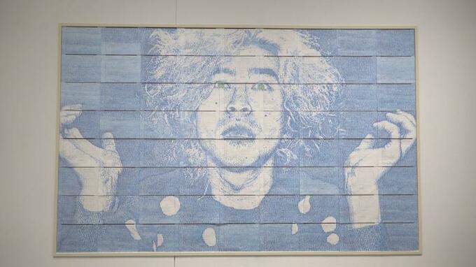 ハンコを点描のように無数に押すことで一枚の絵を表現する技法で約90点の作品が並んでいます。