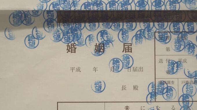 画材として使っているのは婚姻届。しかし、そのタイトルは…『絶望の契約』。