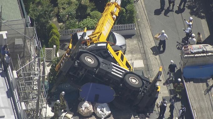 9日午前、名古屋市西区の建設現場でクレーン車が倒れました。
