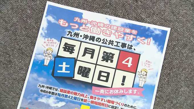 こうした中、九州地方整備局は3月、全ての公共工事で毎月第4土曜日を一斉に休日にする、と発表しました。