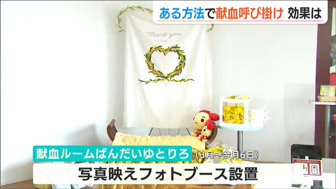 そこで献血ルーム「ばんだいゆとりろ」では今年3月から今月6日まで若者を呼び込もうと写真映えのフォトブースを設置しました。