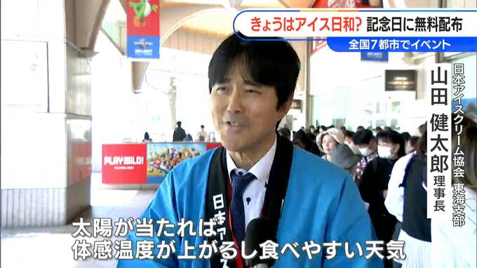 5月9日は「アイスクリームの日」。名古屋駅前ではアイスクリームが無料で振る舞われました。