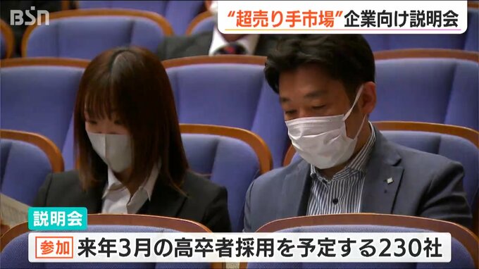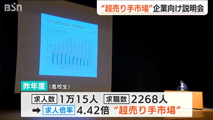 昨年度の高卒求人数はおよそ1万人だったのに対し、求職者は2200人余り。1人あたりの求人数を示す求人倍率は4.42倍と過去最高で、「超売り手市場」になりました。