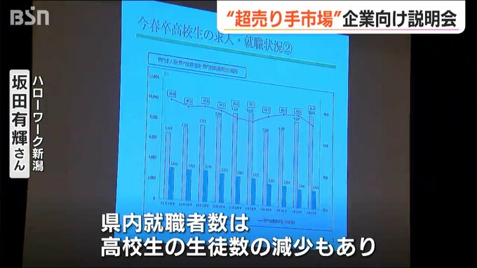 高校生の求人倍率が過去最高と「超売り手市場」になる中、来年の高卒採用を予定する企業を対象に9日、新潟市で合同説明会が開かれました。