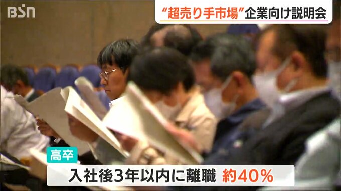 このほか、高卒で入社後3年以内におよそ40%が離職しているとして、職場へ定着できる環境づくりが必要だと説明がありました。