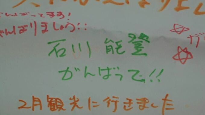 毎年3月に開催される「能登和倉万葉の里マラソン」は七尾市の和倉温泉をスタートし、能登島などを巡るコースで、能登の自然を満喫できる大会として全国からおよそ7000人のランナーが参加しています。今年の大会は中止となりましたが、東京や大阪などで開催されたマラソン大会の参加者から寄せられたメッセージが、金沢マラソンの組織委員会を通じて事務局に届けられました。能登の復興をはじめ、万葉の里マラソンの再開を願うメッセージが書き込まれています。