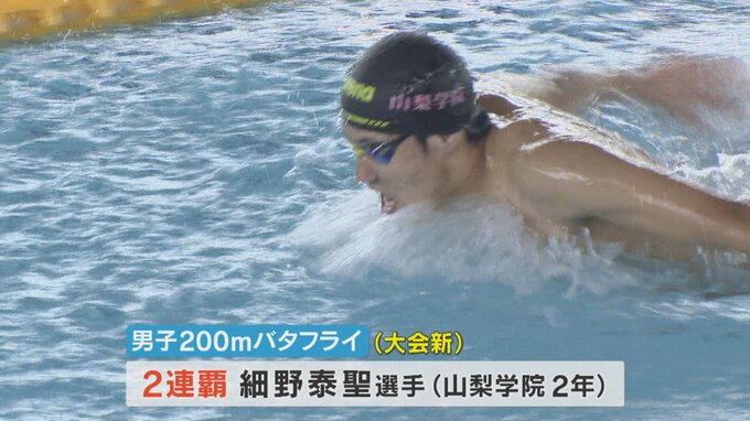 200mバタフライは山梨学院の細野泰聖選手が大会新記録で連覇。