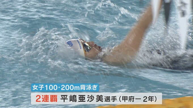 女子100m背泳ぎには今年、全国大会で優勝した甲府一高2年の平嶋亜沙美選手が登場。