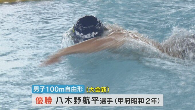 100m自由形は甲府昭和の八木野航平選手が大会新記録で優勝。