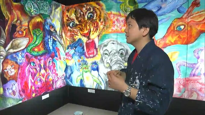 岡山市北区の天満屋岡山店で開催中の自閉症の画家石村嘉成さんの個展も明日(12日)が最終日です。話題を集めた作品の中から一部を、石村さんの解説でご覧ください。 (自閉症のアーティスト・石村嘉成さん)「な…