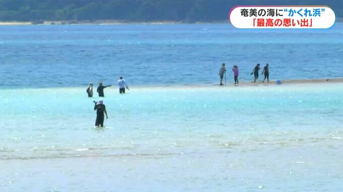 奄美大島で9日、1年に数回しか見られないまぼろしの浜「かくれ浜」が出現しました。かくれ浜は、奄美市笠利町喜瀬集落の海岸線からおよそ200メートル沖合に現れます。春先から初夏にかけて、水面が通常より下がり…