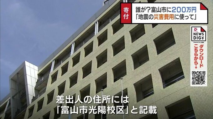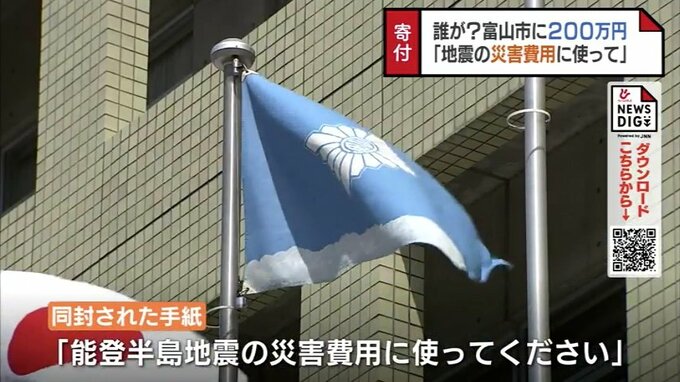 富山市は取り扱いを検討していましたが、同封された手紙に「能登半島地震の災害費用に使ってください」と書かれていたことから、善意の寄付金と判断し受け取ることにしました。