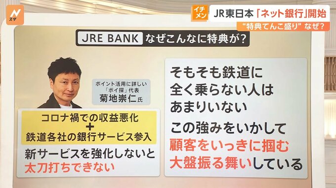 「コロナ禍での収益悪化と、鉄道各社の銀行サービス参入で、新サービスを強化しないと太刀打ちできない。そもそも鉄道に全く乗らない人はあまりいない。この強みをいかして顧客をいっきに掴む大盤振る舞いをしている」