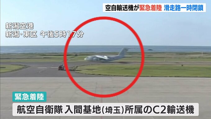午後5時17分に最寄りの新潟空港に緊急着陸しました。