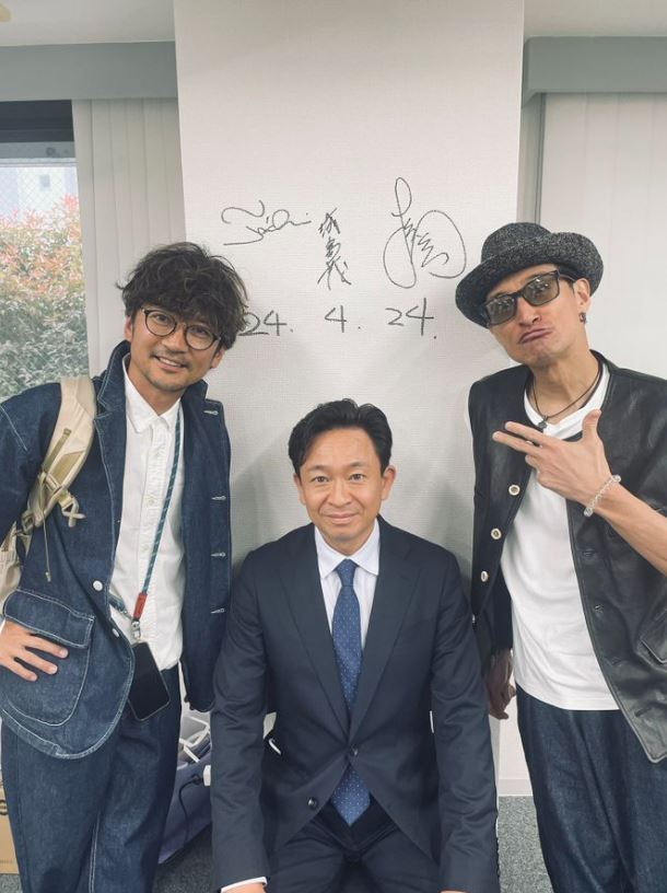 X公式アカウントには、新しいオフィスと思われる部屋の白い柱に書かれた "引っ越し年月日" と思われる「24.4.24.」という手書きの数字と、メンバー3人のサインを背にした、真ん中の社長・城島茂さん、左側の副社長(企画)・国分太一さん、右側の副社長(広報)・松岡昌宏さんの3ショットの写真が投稿されています。