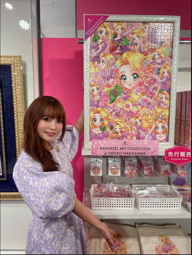 中川さんは投稿で「わたしが描いたラプンツェルの絵がディズニー公式グッズになっています!」として、ディズニーのアニメ映画「塔の上のラプンツェル」の主人公ラプンツェルのイラストが採用されたジグソーパズルやバスタオル、クッションなどのグッズを紹介しました。