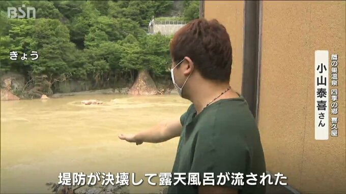 【喜久屋副館主 小山泰喜さん]】「「堤防が決壊して、露天風呂が流された。地面の高さと同じまで水が来ているはず」